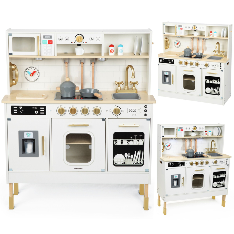 XXXL puidust interaktiivne nurgaköök koos külmiku, mikrolaineahju, ahju, nõudepesumasinaga ja tarvikutega - valge