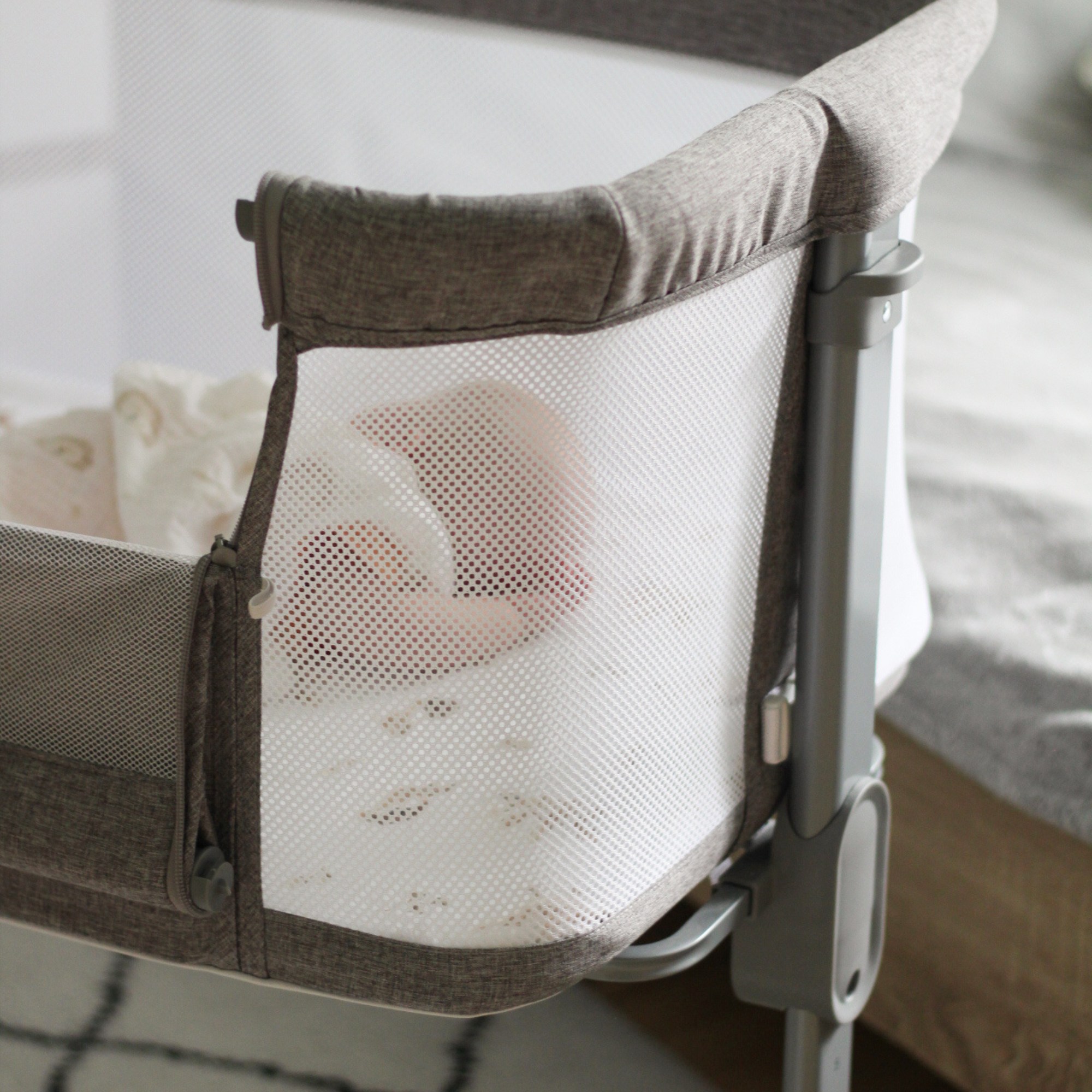 LUNA saab tänu spetsiaalsetele reguleeritavatele kinnitusrihmadele turvaliselt ja mugavalt vanemate voodiga ühendada. Lihtsalt libistage ja kinnitage lapse võrevoodi otse hooldajate voodi kõrvale.