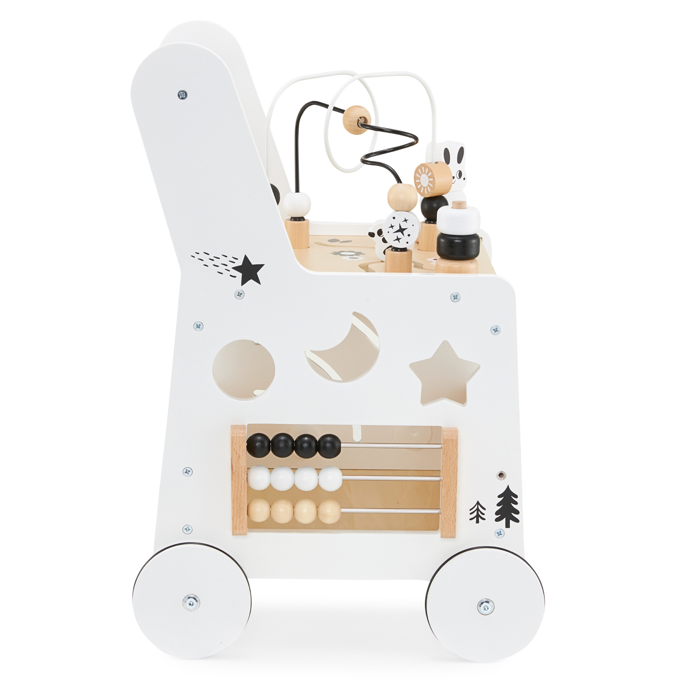 Tänu puidust ja stabiilsele lapsevankrile tunneb teie väikelaps end oma esimeste sammude tegemisel kindlamalt. Ja kui on aeg puhata, saab ta aega veeta õppelaual. Siin ootab ees rohkelt sensoorset stimulatsiooni. Fantastiline treening väikestele sõrmedele!