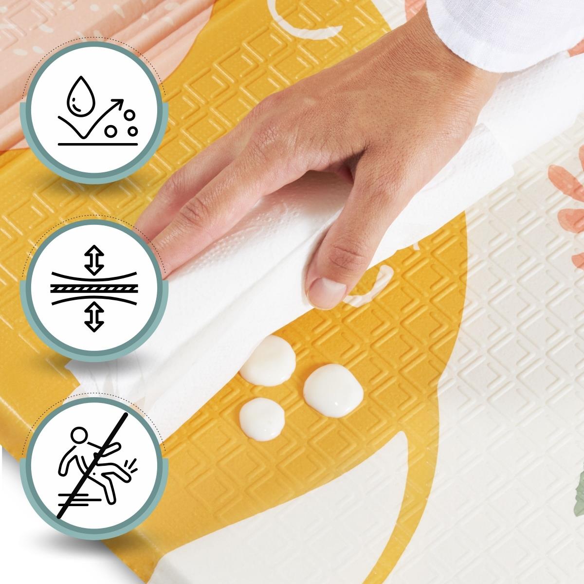 Kahepoolne vaip sobib ideaalselt mitte ainult kodus, vaid ka aias või puhkusel mängimiseks. Võta see kaasa randa, piknikule metsa või aeda, et su laps saaks kodust eemal olles mugavalt olla. Matt võib toimida ka liikumisalana mitte ainult väikelastele, vaid ka täiskasvanutele. Seda saab kasutada mitmel erineval viisil!