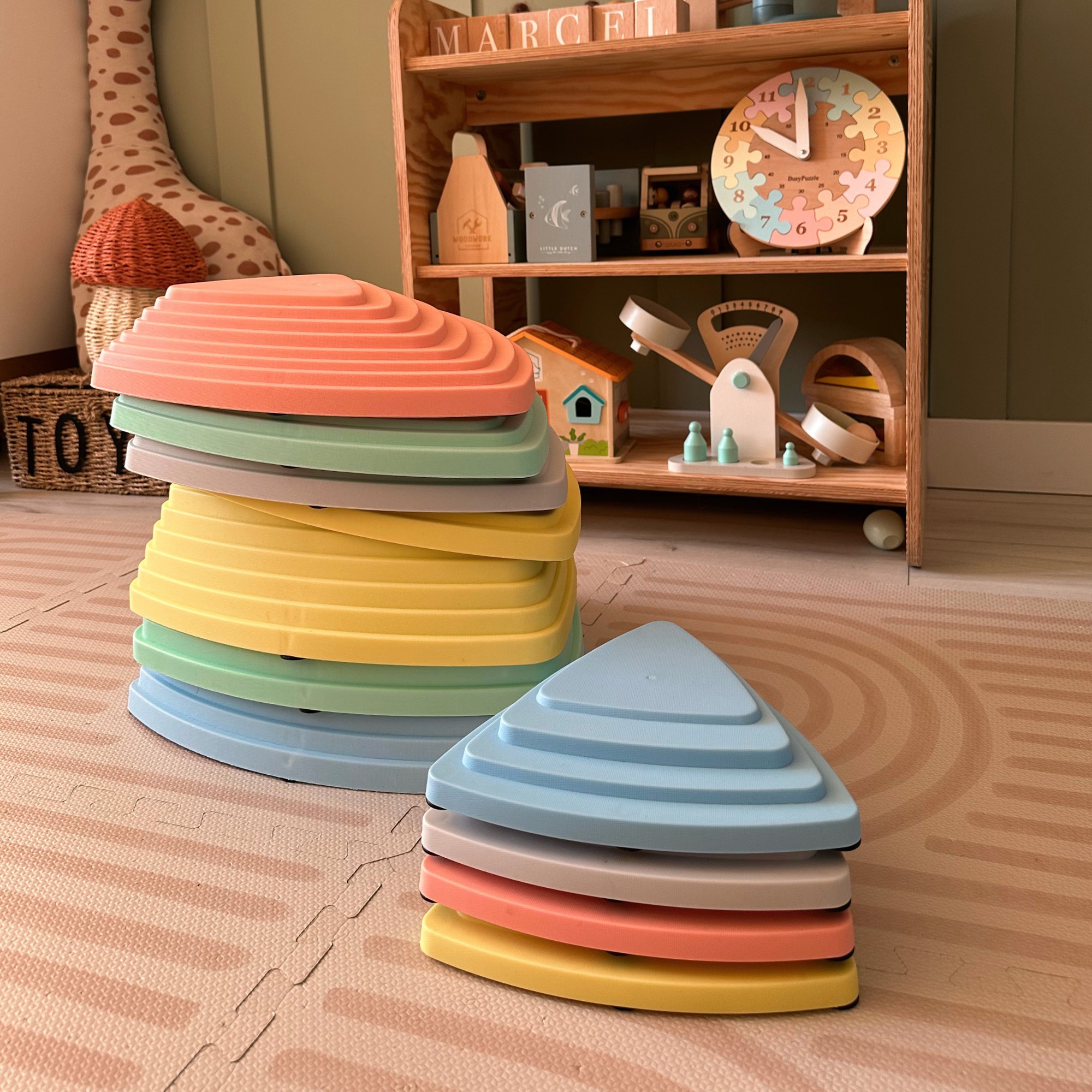 Pastelsetes värvides saadaval olev tasakaalukivide komplekt ei kaunista mitte ainult lastetuba, vaid pakub eelkõige loomingulist meelelahutust. Kive saab kasutada mitmel erineval viisil, sõltuvalt laste jooksvatest vajadustest ja ideedest. Tasakaalukivid toetavad ka väikelaste motoorset arengut ja annavad neile võimaluse harjutada oma tasakaalutunnet.