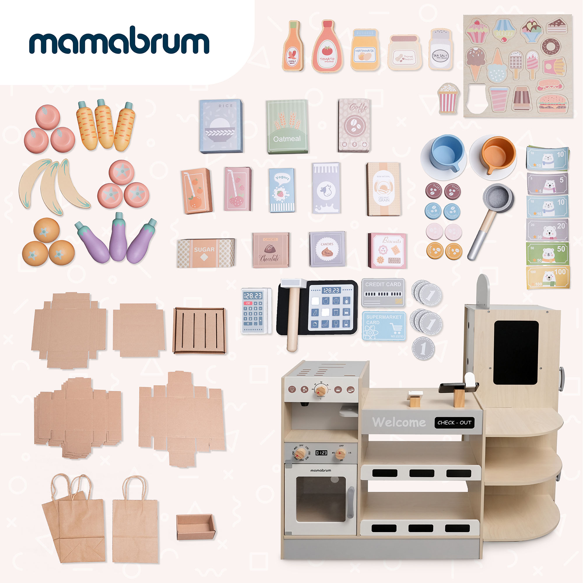 Suur puidust lastepood koos kiirtoidubaariga on tõeline lõbutsemiskeskus väikestele poemüüjatele ja klientidele. Rohkete riiulite, ahju, külmiku ja kohvimasinaga nurgakujundus julgustab neid uurima erinevaid rolle - alates baristast kuni poepidajani. Tugev konstruktsioon ja kuni 106 lisatud tarvikut muudavad mängu äärmiselt realistlikuks ja arendavaks, õpetades organiseerimist, loovust ja sotsiaalseid oskusi.