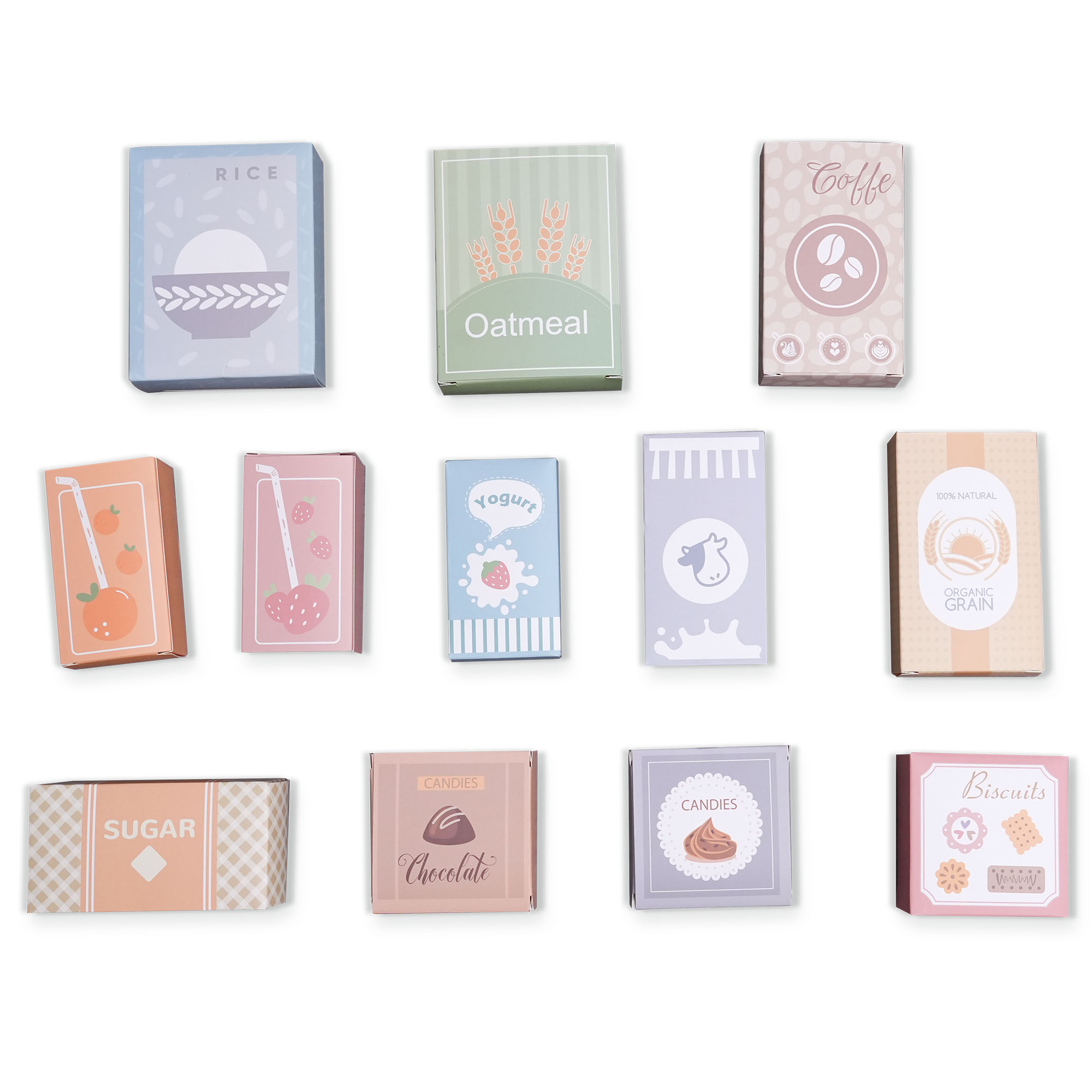 • kastid toodetega (piim, jogurt, suhkur, kohv, kaerahelbed, jahu, küpsised, maiustused, riis, apelsinimahl, maasikamahl, ) - 12 tk.