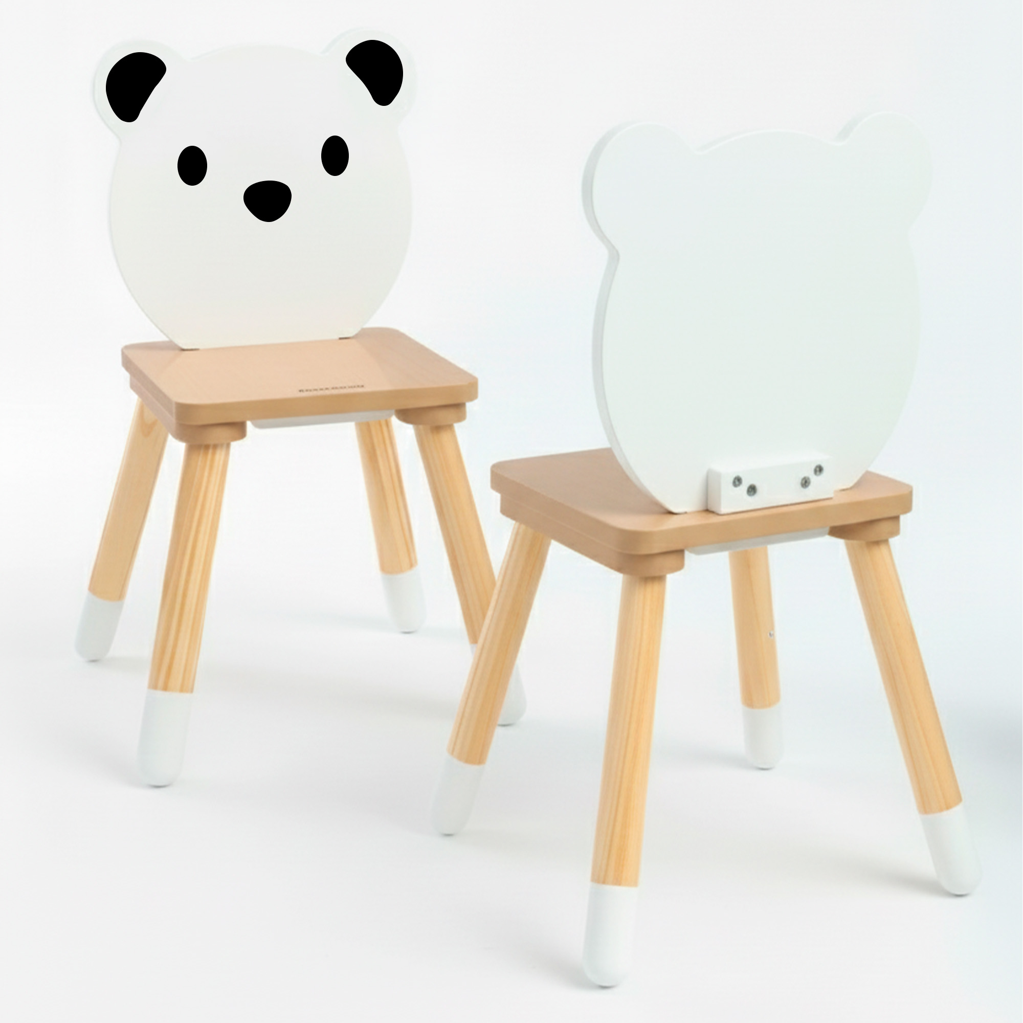 - Võluv kaisukaru disain – toolide seljatoed on kaisukaru näo kujulised ja lauaplaadil on kaisukaru pilt.