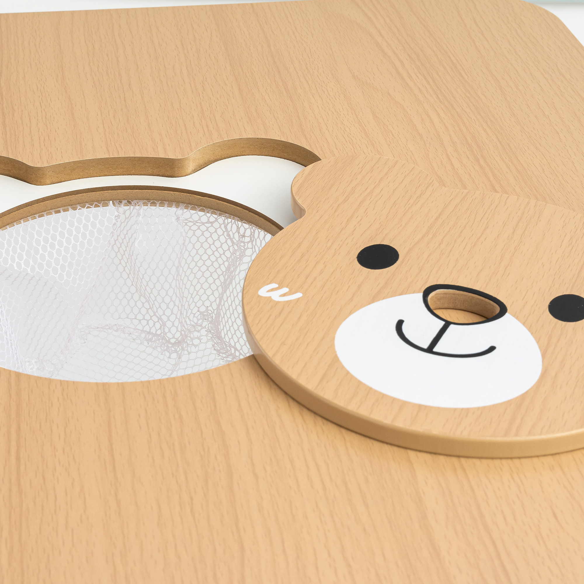 Selle laua tõeline pärl on painduvast võrgust valmistatud keskne hoiuruum – see on nutikalt lauaplaadi alla peidetud , võimaldades teil kiiresti hoiustada värvipliiatseid, klotse või lemmikmänguasju, hoides samal ajal lauaplaadi korras. Sahtlil on praktiline, kaisukarukujuline kaas , mis suletuna loob ideaalselt sileda pinna . Lastel on lihtne juurdepääs kõigile oma olulistele asjadele ilma laua tagant tõusmata. See pole mitte ainult praktiline, vaid ka rõõm pisikestele – iga kord, kui nad lauaplaadi all olevasse "salajasse taskusse" ulatuvad, muutub tavaline mäng põnevaks seikluseks!