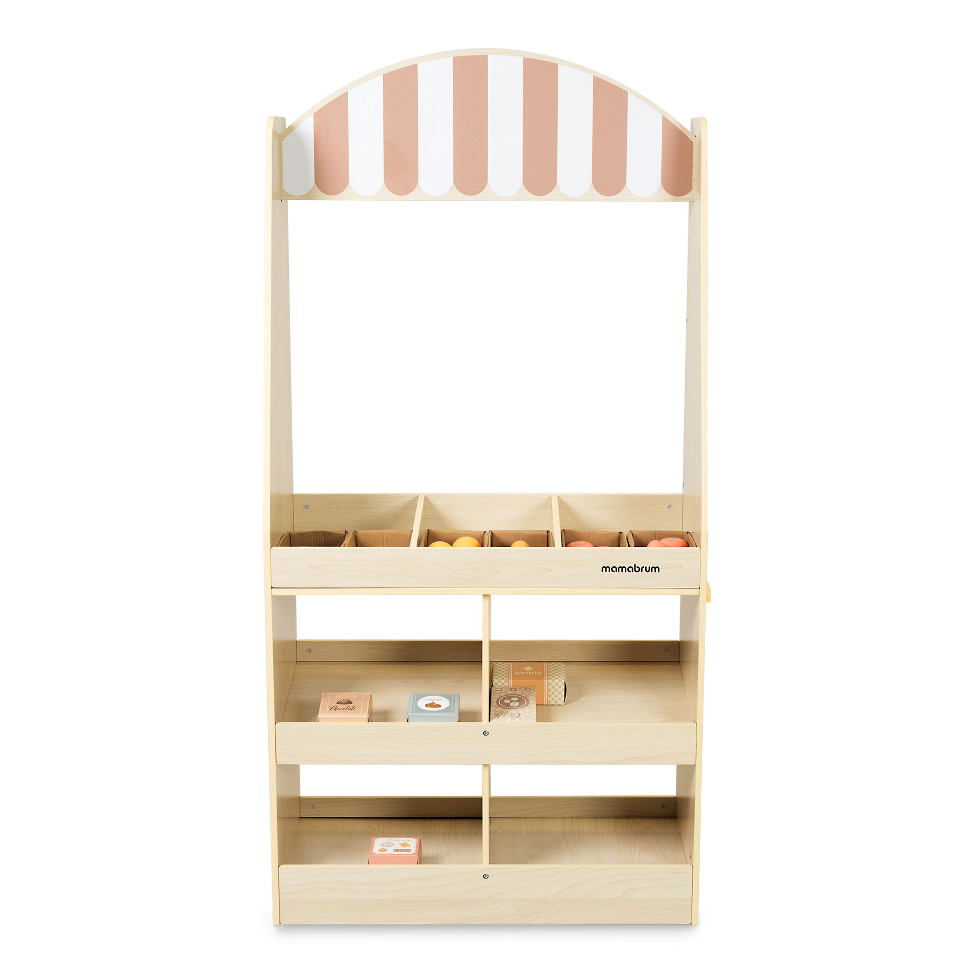 Muuda lapse tuba sagivaks supermarketiks! Mamabrumi puidust pood on tõeline loomingulise mängu keskus, kus pisikesed saavad mängida müüjaid või kliente. Selle realistlik disain , suur SUPERMARKETi silt ja praktiline tahvel hindade või pakkumiste kirjutamiseks panevad lapsed tundma , nagu nad oleksid päris poes . See on suurepärane viis kujutlusvõime arendamiseks, arvutamise õppimiseks ja sotsiaalsete oskuste harjutamiseks – kõik see läbi lõbu, mis ei vanane kunagi!
