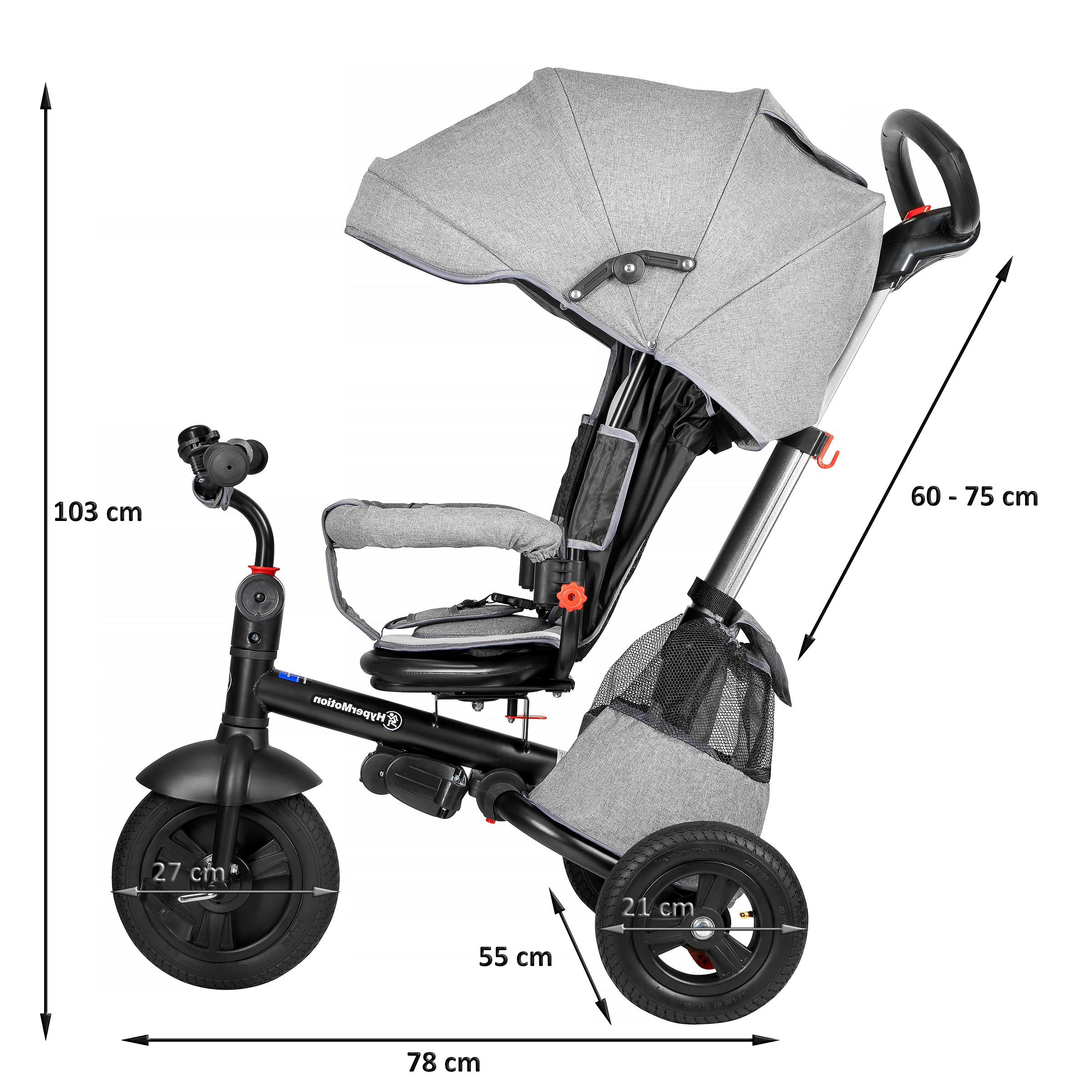 • Reguleeritava kõrgusega tõukeratas - nupuvajutusega