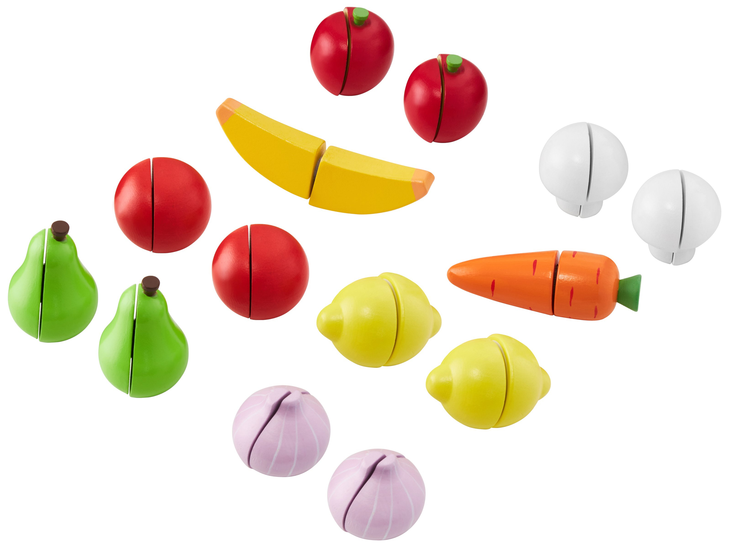 - kuni 16 tükeldatavat köögivilja ja puuvilja (iga köögi- või puuvilja koosneb kahest poolitusest, mis on omavahel ühendatud Velcro'ga)