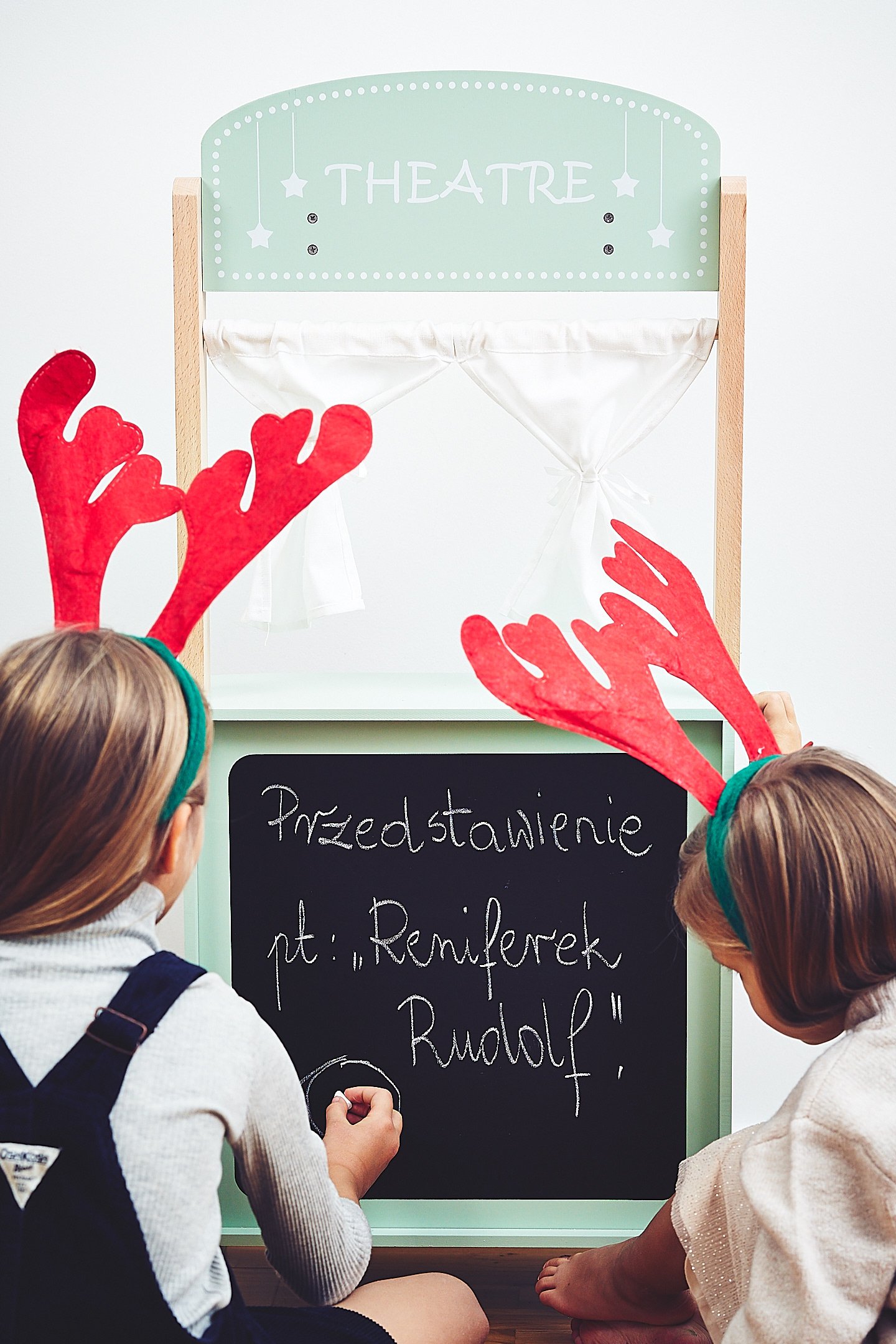 Teisest küljest leiad kardinaga teater. Väike näitleja saab esitada lõpmatult palju etendusi. Teater on varustatud võluvate kardinate ja suur kriiditahvel järgmiste etenduste väljakuulutamiseks. Ovatsioonidele ja encore'idele ei tule lõppu!