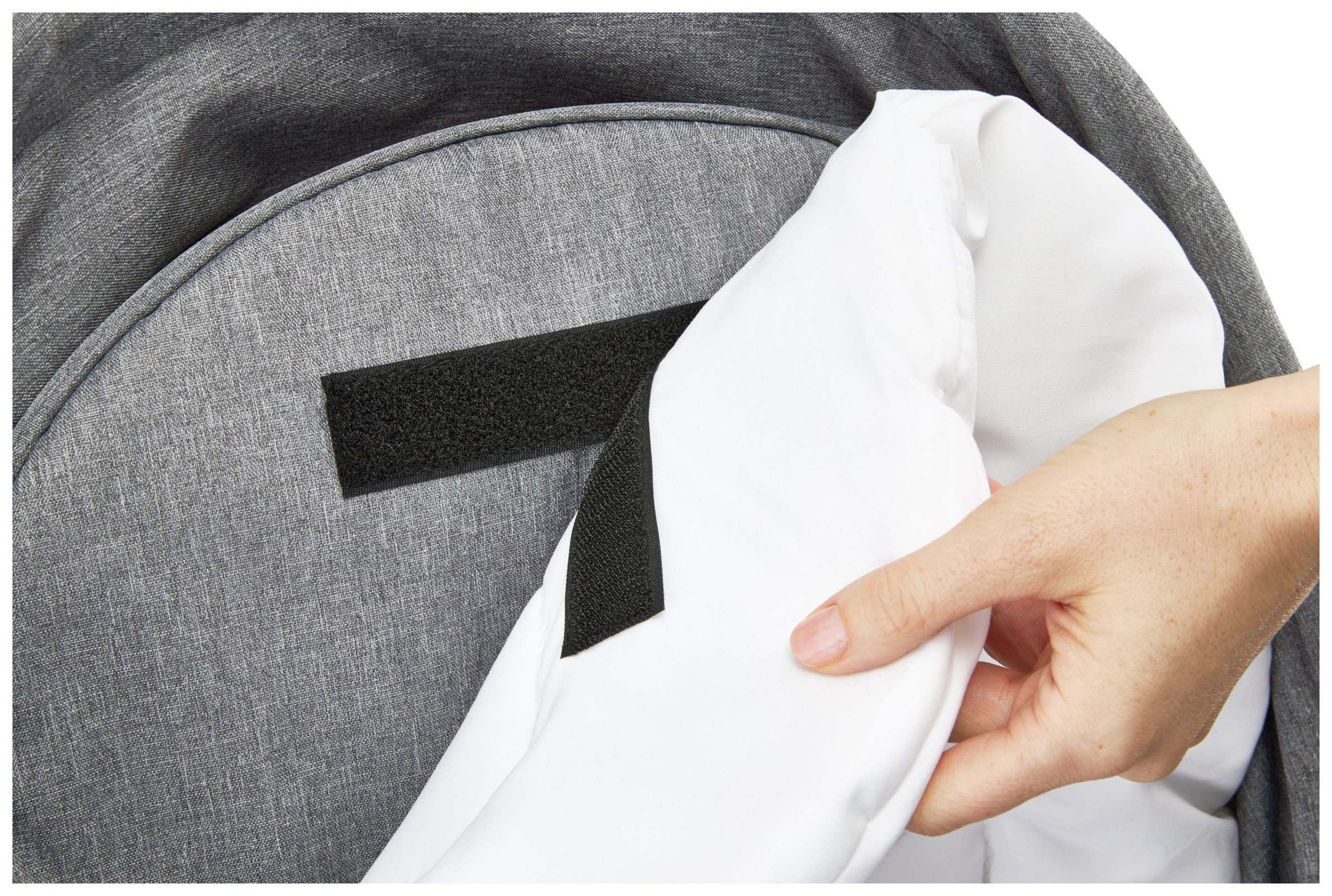 Mila võrevoodi ja lamamistool on valmistatud suure tähelepanuga. See on varustatud mugavate, reguleeritavate turvavööd, kaetud laia, pehme jalgevahelise rihmaga.