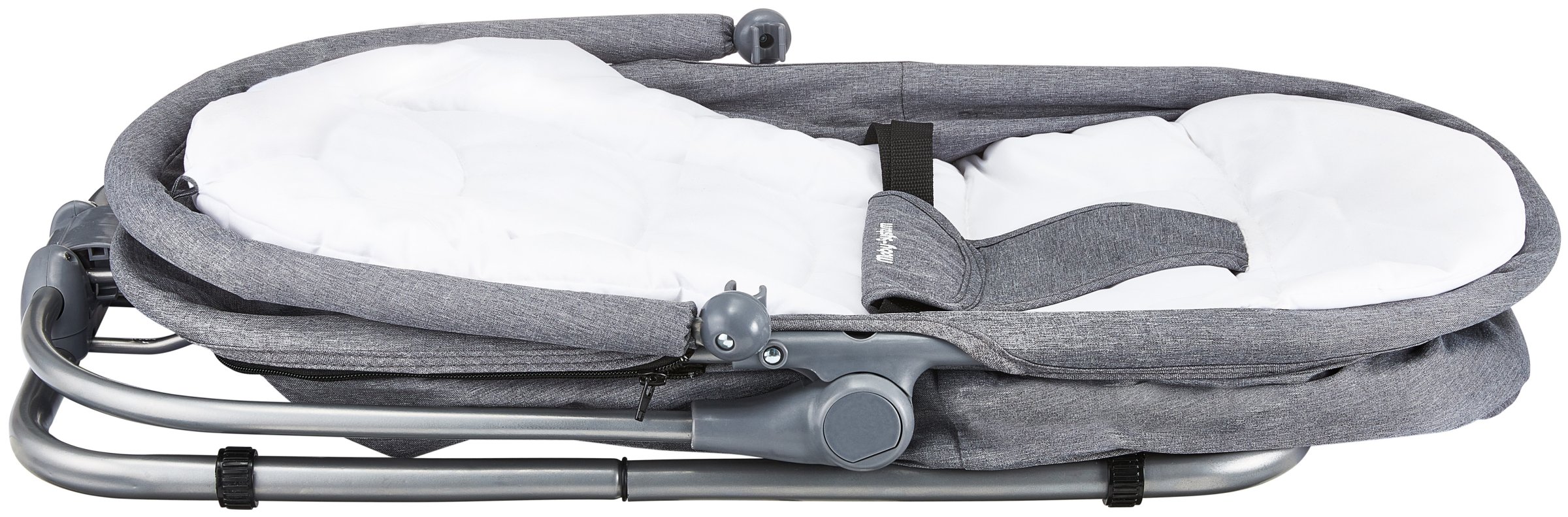 Mila võrevoodi ja hüppeliiv pakub lapsele mugavust. See võimaldab lapsel puhata vaikses, loomulikus keskkonnas ilma häiringuteta. Sellel ei ole vilkuvat valgust ega valju meloodiat, seega ei paku see lapsele liiga palju stiimuleid. Selle minimalistlik disain ja vaoshoitud värvid rahustab beebi ja tagab teile puhkehetke.