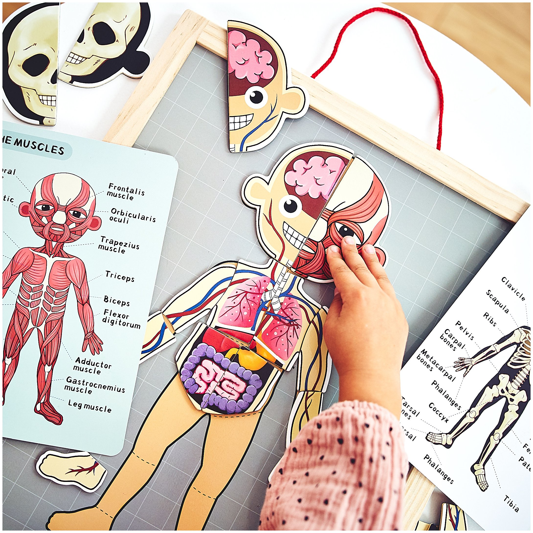 Inimkeha ehitus on äärmiselt keeruline. Magnettahvli abil muutub aga kõik lihtsamaks! Selle abil näeb väikelaps, mis on meie naha all peidus. Komplekti kuulub pusle inimese skeleti, lihaskonna, siseorganite ja veresoonega. Mänguasja saab kasutada ka õppevahendina, et õppida inglise keele sõnavara kehaosade kirjeldamiseks.